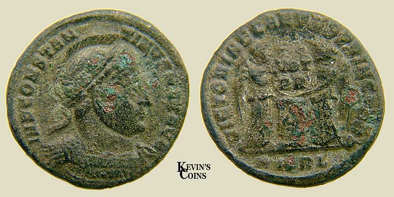 AE3 (18mm) Struck 319-320ad Arelate Obv: IMP CONSTANTINVS MAX AVG Helmeted, laureate, draped, and cuirassed bust right |