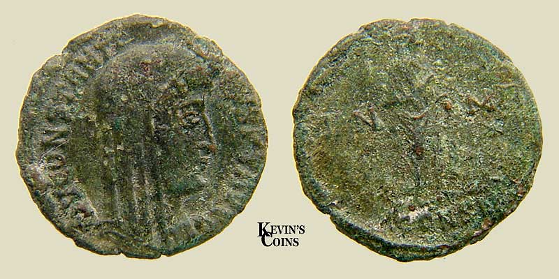 Obv: DV CONSTANTINVS PT AVGG Veiled head right