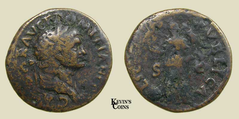 Obv: CAESAR AVG F DOMITIAN COS V laureate head right.