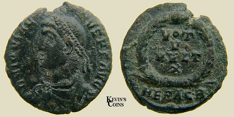 Obv: IOVIANVS P F AVG Pearl diademed, draped, and cuirassed bust left