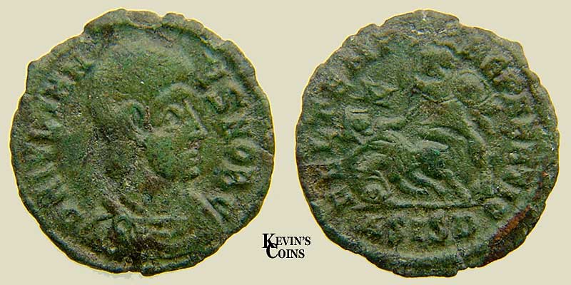 Rev: FEL TEMP REPARATIO Soldier spearing fallen horseman. Horseman reaches to soldier. M in left field ASISD in exergue. RIC VIII 374 Siscia |
