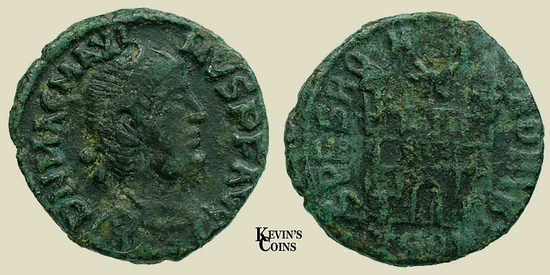 Rev: SPES ROMANORVM Campgate with a star between two turrets TCON in exergue
