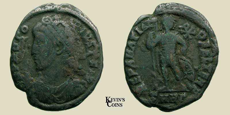 holding labarum in right hand and rest left hand on sheild. CHI-RHO above RIC IX 7 |