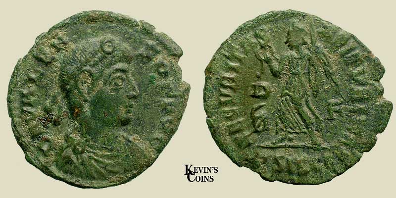 AE 3 (19mm, 2.40g) Struck 367-375 A.D. Siscia Obv: D N VALENS P F AVG Diademed, draped, and cuirassed bust right |