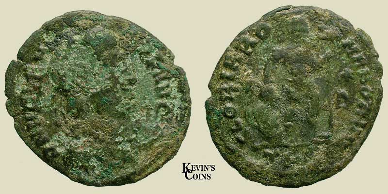 Obv: D N VALENS P F AVG Diademed, draped, and cuirassed bust right
