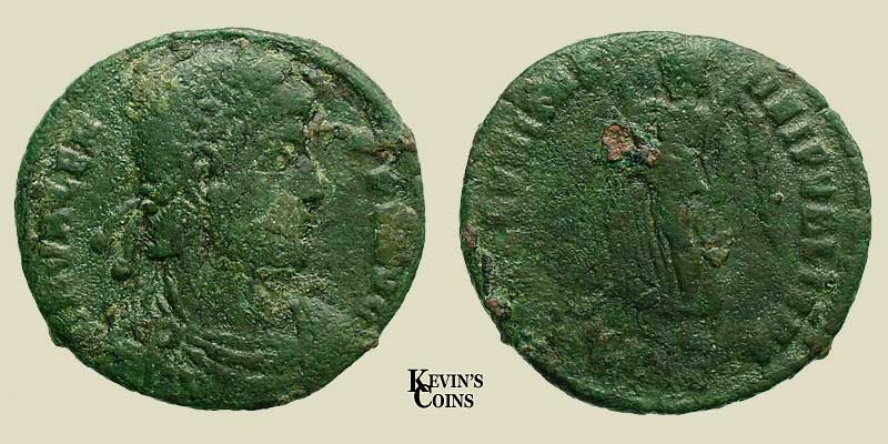 Obv: D N VALENS P F AVG Diademed, draped, and cuirassed bust right