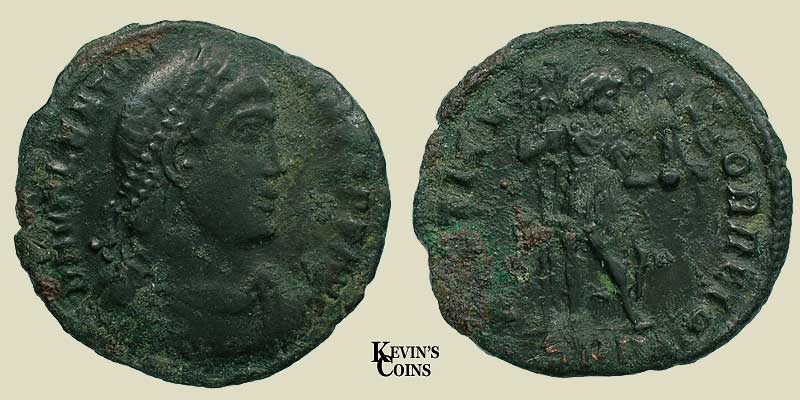 AE 3 (19mm 2.38g) Struck 365-366 A.D. Heraclea Obv: D N VALENTINIANVS P F AVG Pearl diademed, draped, and cuirassed bust right |