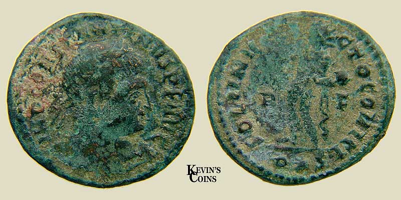 AE 3 (20mm) Struck 314 A.D. Rome Obv: IMP CONTANTINVS P F AVG Laureate, draped and cuirassed bust right |
